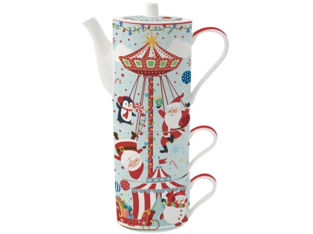 Set 2 hrnčekov na čaj s čajníkom, Coffee Mania Santa's Carousel