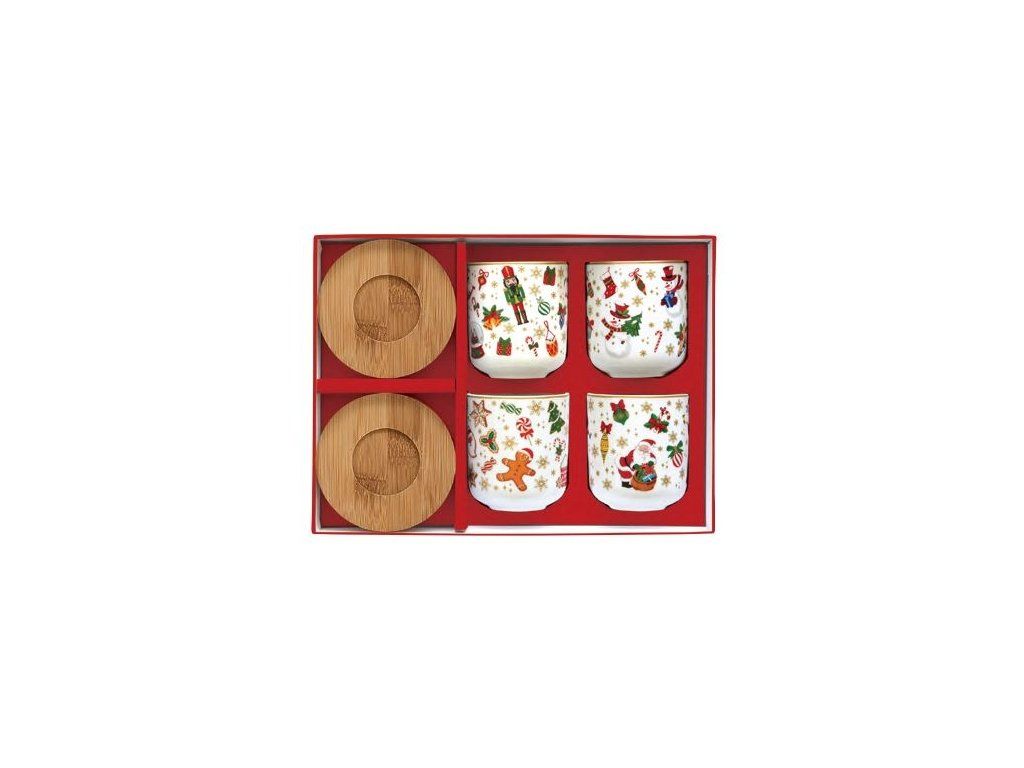 Set pre 4 osoby - porcelánový hrnček espresso s bambusovým tanierikom, 110ml, Coffee Mania Christmas