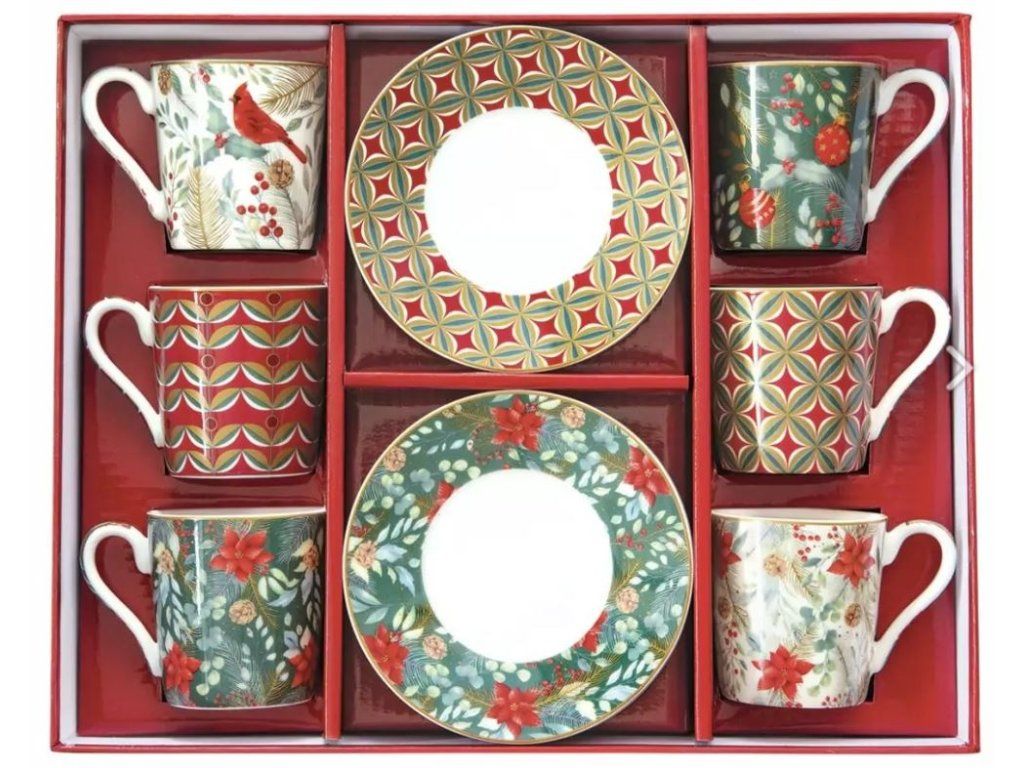 Set pre 6 osôb - porcelánový hrnček espresso s tanierikom, 100ml, Coffee Mania Christmas Joy