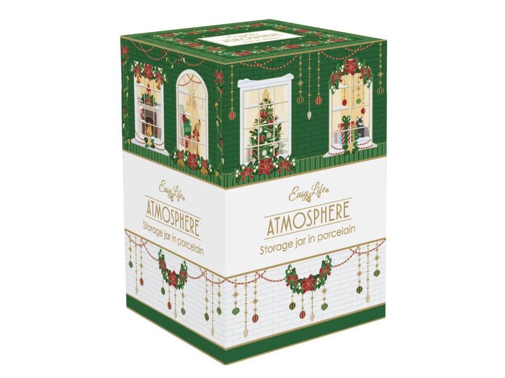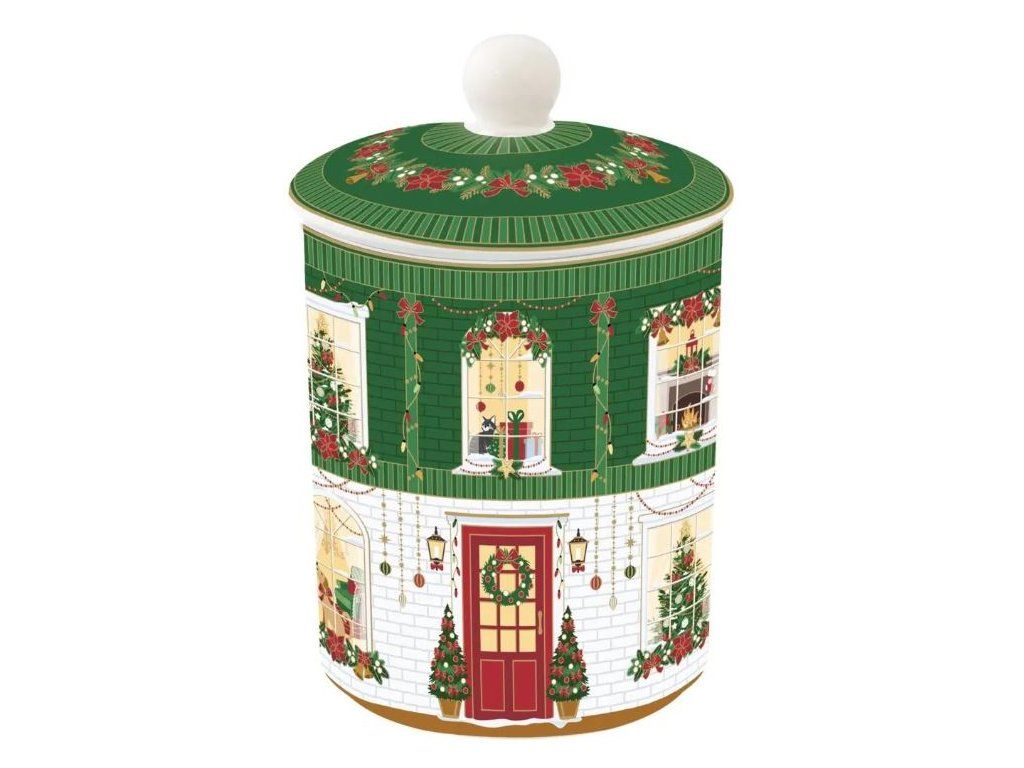 Vianočná dóza na sladkosti s krásnym motívom. Vhodný darček pre Vašich blízkych, balenie produktu je darčekové. Rozmer: priemer 11,5 x 18 cm Materiál: Porcelán Vhodné aj do umývačky riadu.Dodatočné parametre