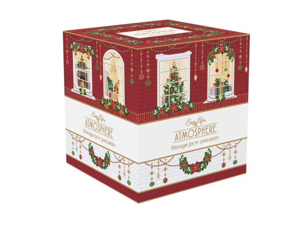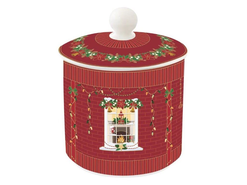 Vianočná dóza na sladkosti s krásnym motívom. Vhodný darček pre Vašich blízkych, balenie produktu je darčekové. Rozmer: priemer 10,5 x 13 cm Materiál: Porcelán Vhodné aj do umývačky riadu.Dodatočné parametre