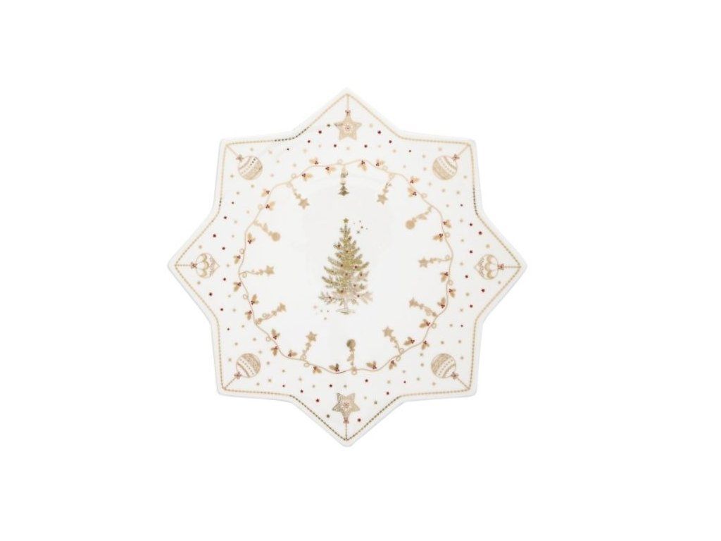 Vianočný podnos na servírovanie torty alebo vianočných koláčikov. Je to milý darček s motívom vianočných svetielok. Produkt je zabalený v darčekovom balení. Materiál: Porcelán Produkt nie je vhodný do umývačky riadu.Dodatočné parametre