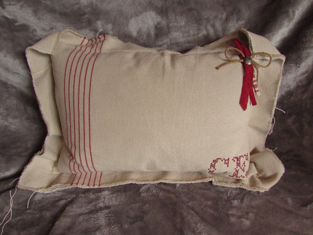 Vankúš béžový, 40x55 cm (pásik červený / modrý)