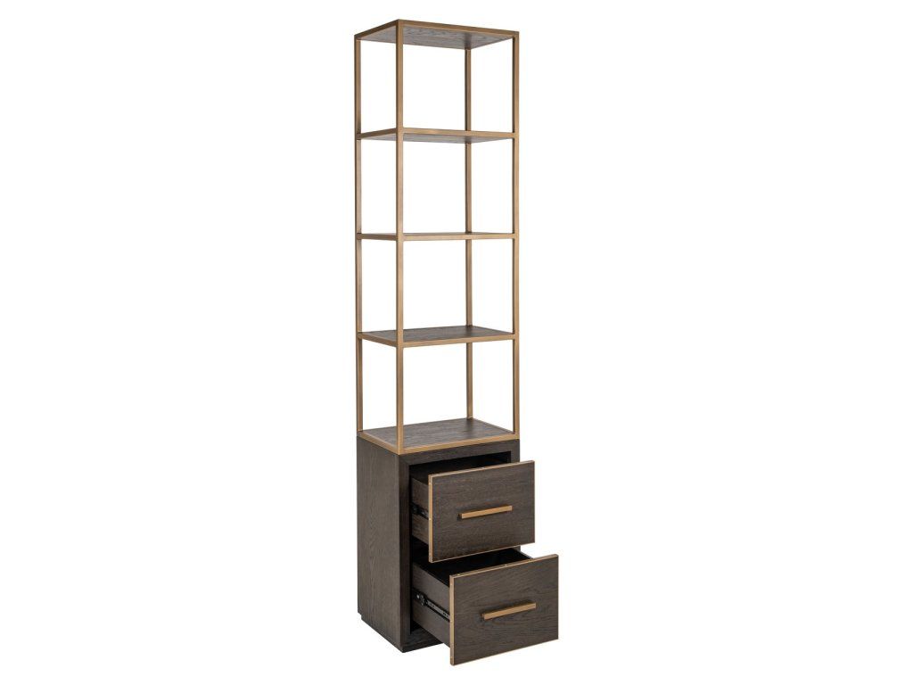 Malá vitrína Carter má dve zásuvky a otvorené police v hornej časti. Kompaktný kus s minimalistickým, otvoreným dizajnom. Ideálna na vystavenie aj úschovu vecí.Dodatočné parametre