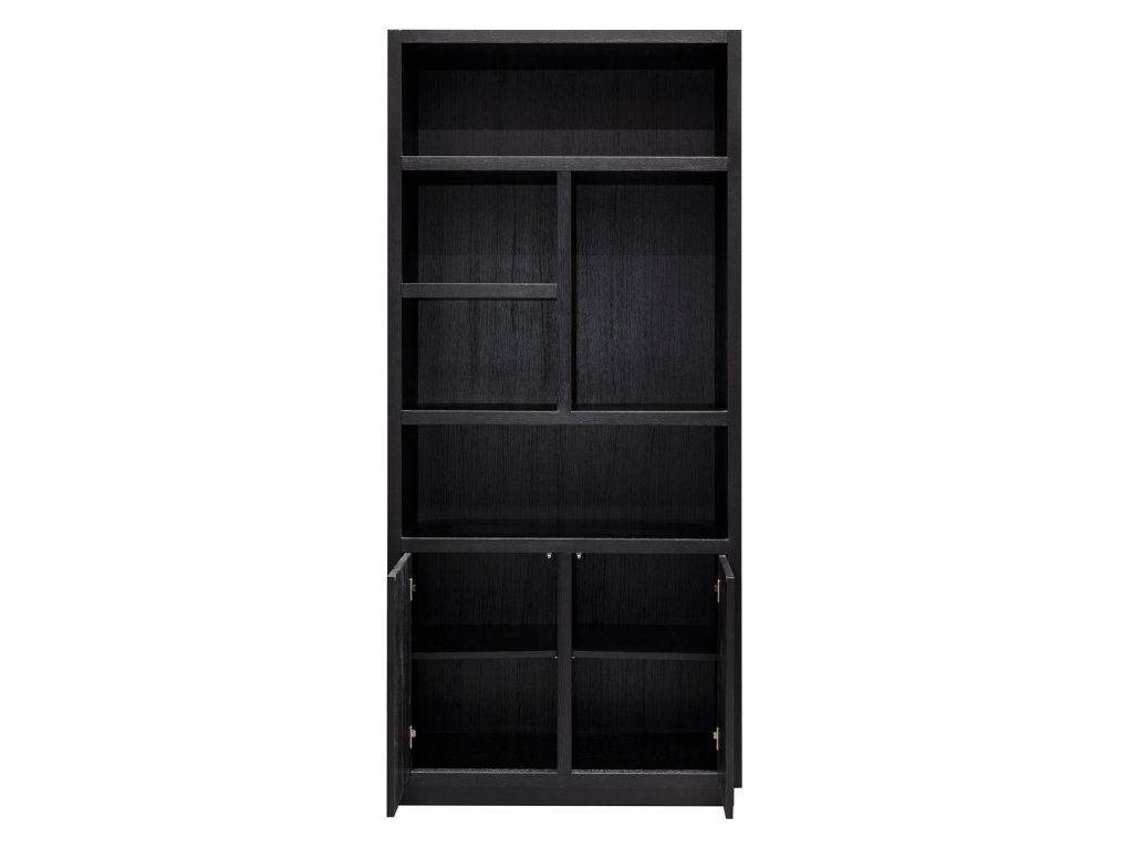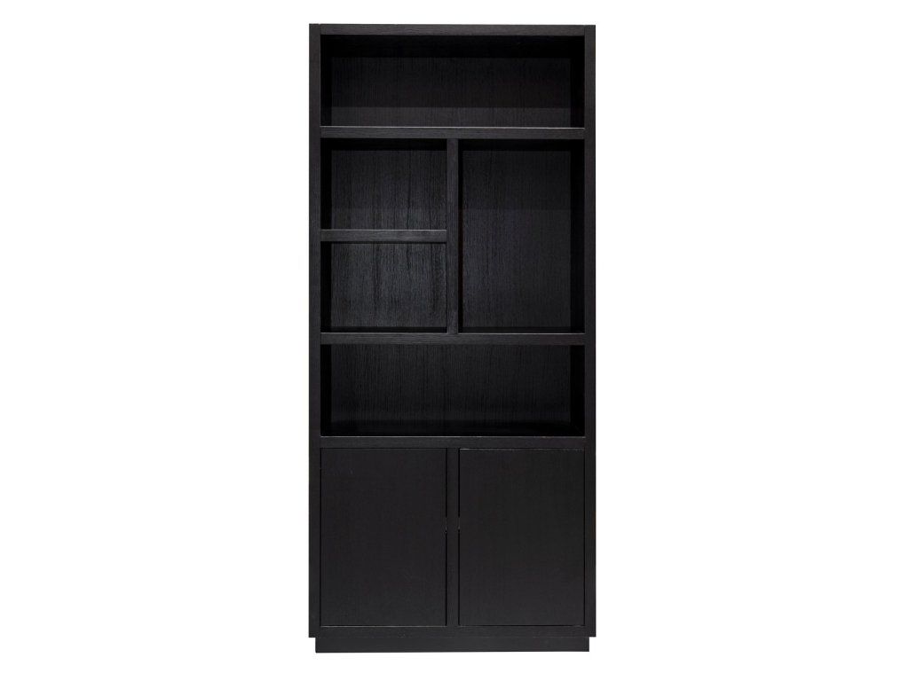 Knižnica Oakura je lákavo čierna s otvorenými priehradkami a dvoma zatvorenými dvierkami. Dostatok miesta pre vaše krásne doplnky! Knižnica Oakura je vyrobená z čiernej dubovej dyhy. Základná s moderným a elegantným nádychom.Dodatočné parametre