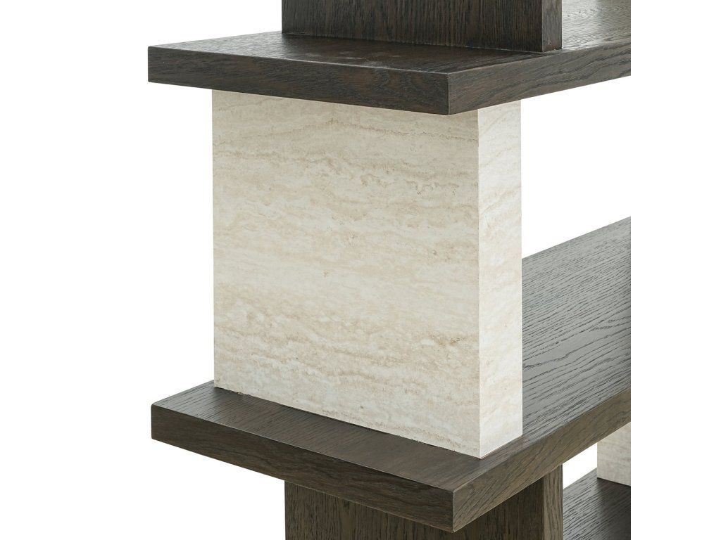 Waldorfská vitrína kombinuje drevené, kamenné, dubové dyhy a preglejky, čo jej dodáva robustný a štýlový vzhľad. Vitrína má štyri priestranné police, ktoré ponúkajú dostatok priestoru na vystavenie kníh, dekorácií a iných predmetov. Kombinácia dreva a kameňa vytvára zaujímavý kontrast, zatiaľ čo dubová dyha dodáva teplý a prirodzený vzhľad. Robustná konštrukcia a moderný dizajn robia z tejto vitríny všestranný a dekoratívny doplnok do každého interiéru.Dodatočné parametre