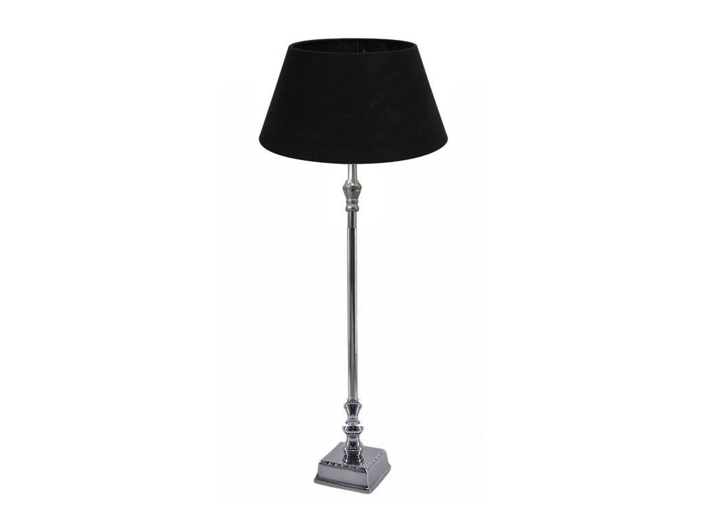Elegantne vysoké strieborné stolné svietidlo, s čiernym klasickým tienidlom. Tienidlo sa dá v prípade záujmu nahradiť iným (možnosť výberu farby, varu a veľkosti). Rozmer nohy lampy je 10x10x výška 67 cm, rozmer tienidla je 35x25x výška 19 cm. Svietidlo je v akciovej cene, máme ho v počte 2 kusy, sú to vystavené kusy bez poškodenia, tienidlá sú zabalené.Dodatočné parametre